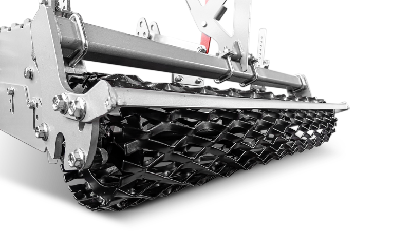 Il rullo a rete posteriore, in acciaio e più largo della larghezza di lavoro dell’erpice, ha una duplice funzione: